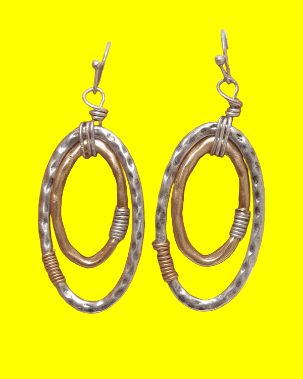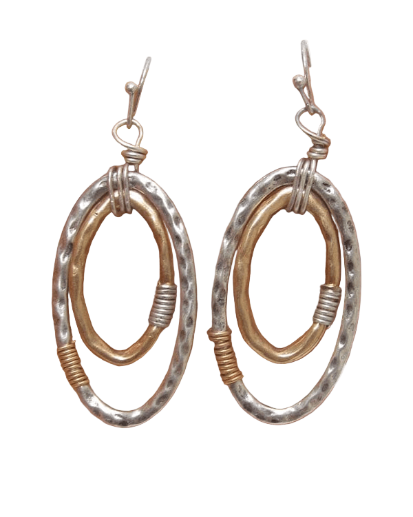 These stunning earrings feature a unique double hoop design in both gold and silver tones, creating a stylish and versatile look. A must-have addition to any fashion jewelry collection. Elevate your outfit and make a statement with these beautiful earrings. Hook closure, lightweight, length: ~2.5 inches