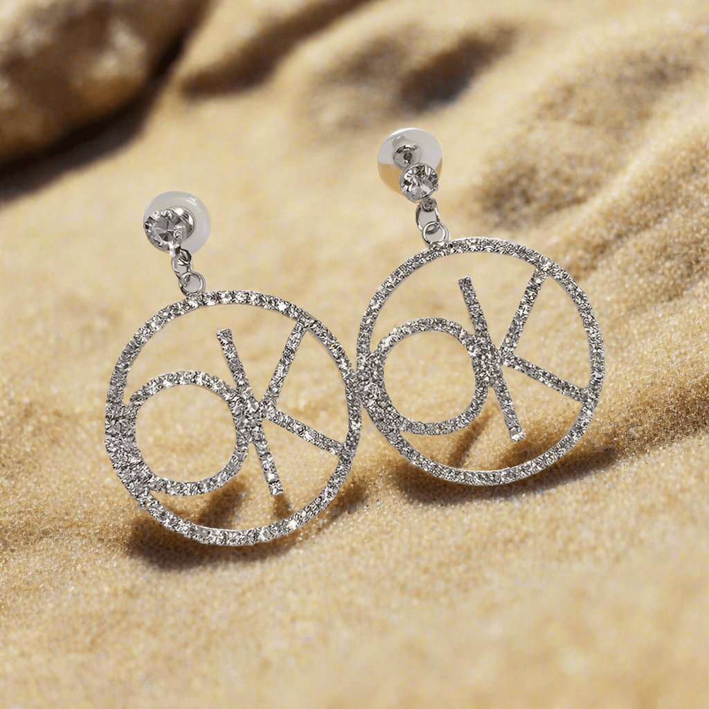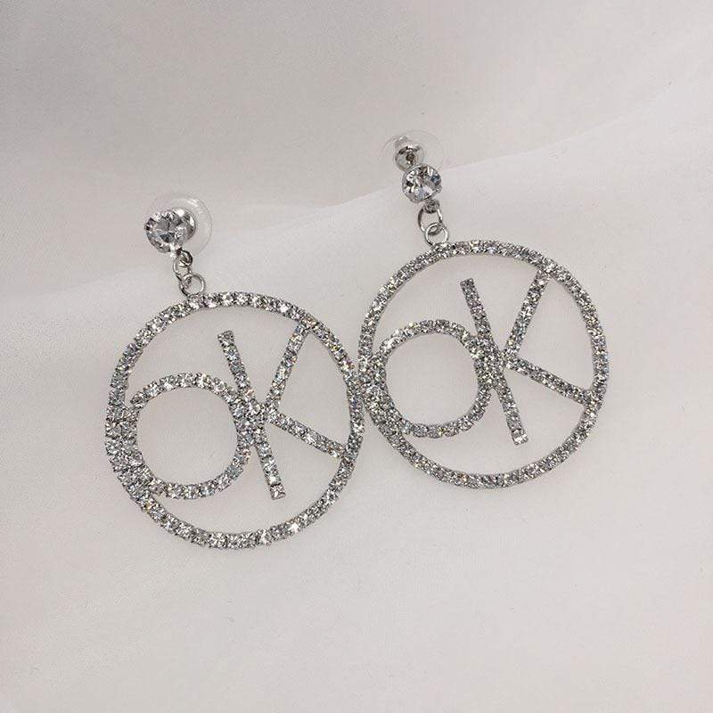 Take a bold step with our Womens Silver Letter Crystal "OK" Dangle Drop Earrings. These earrings are perfect for the risk-takers, adding a touch of sparkle and attitude to your outfit. The dangling "OK" letters are a reminder to always move forward and embrace life's adventures. Make a Statement with Trendy Silver Crystal "OK" Earrings Length: 2.5 inches