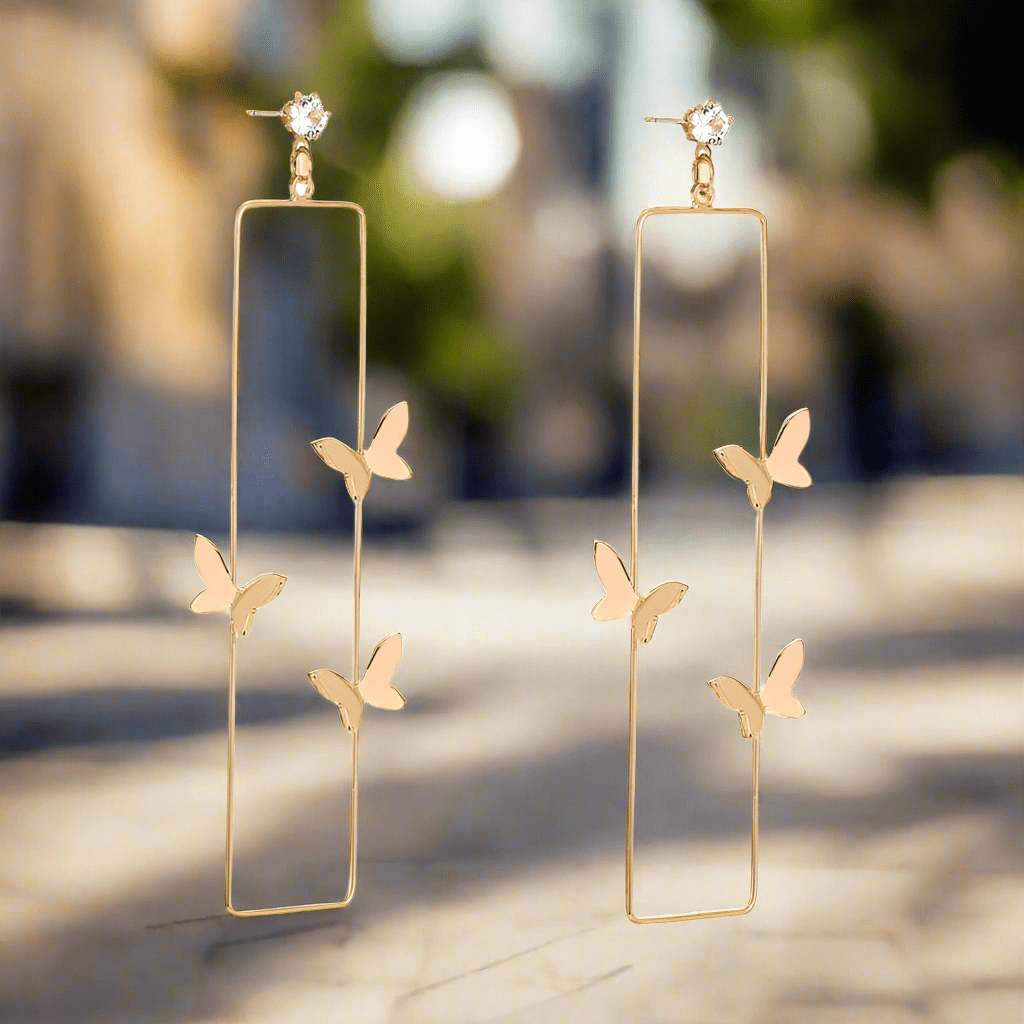 Upgrade your jewelry collection with our elegant Fashion Earrings. These Womens Dangle Rectangle Gold Tone Butterfly Hoop Earrings are perfect for any occasion. Crafted with high-quality materials, they are lightweight and comfortable to wear. The unique rectangular shape adds a touch of sophistication, making them a must-have accessory. Lightweight Length: ~3 inches